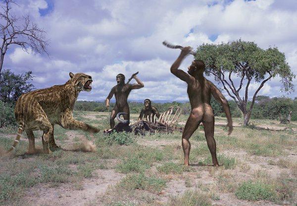 即人类的祖先(南方古猿等)很可能会从食肉动物那里偷走或者是抢走刚刚捕获的猎物,而随着时间的推移造成了整个物种数量的减少甚至是灭绝。