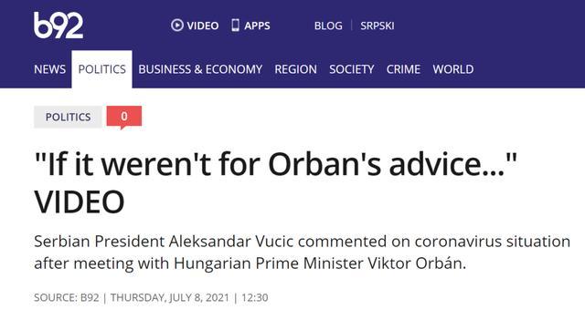 “当时我们没有医疗设备,我们没有太多太多需要的东西。欧尔班对我说,‘去找中国,这是唯一能救你们的方式,尽快’。我那样做了,并且我们在大流行期间(也)收到了匈牙利送来的设备。”武契奇说,“我们清楚地记着是谁帮助了我们。如果不是欧尔班的建议,我们就得不到所需的一切东西。”