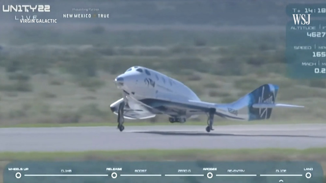 在到达距地面约86千米的最高点后,“团结”号缓慢转向、滑翔下降,最后顺利降落在发射场跑道。