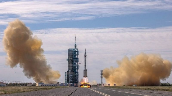 搭载神舟12号飞船的长征二号F遥十二运载火箭升空画面