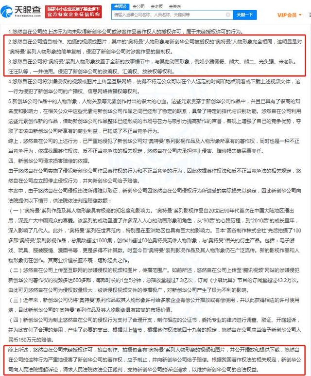 该判决书显示,新创华公司诉称,悠然自在公司未经新创华公司授权许可,使用奥特曼形象玩具,擅自制作、拍摄包含有奥特曼系列人物形象的视频和图片,将奥特曼系列人物形象放置于全新的故事情节中,与其他动画形象,例如小猪佩奇、光头强等一并使用,并将其上传至互联网等行为,侵犯了新创华公司的改编权、汇编权、放映权等权利。