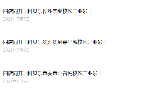 每经小编注意到,科贝乐官方微信新闻稿显示,在一线城市关店退费无门时,科贝乐仍在部分二三线城市密集开店。