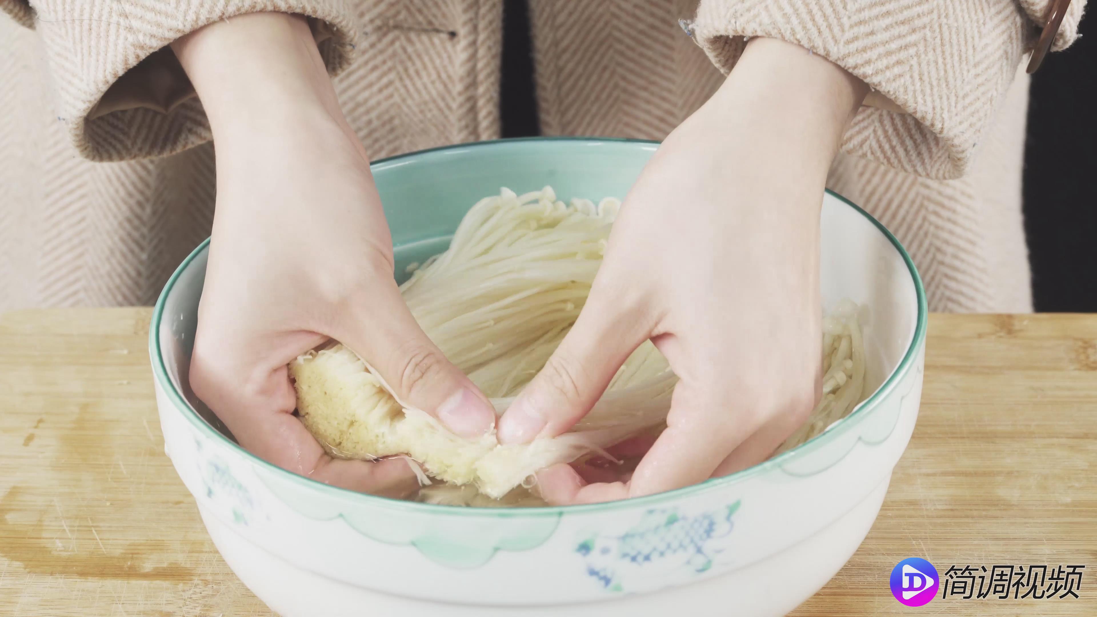 第一步:金针菇洗净,切去根部,然后摆盘。