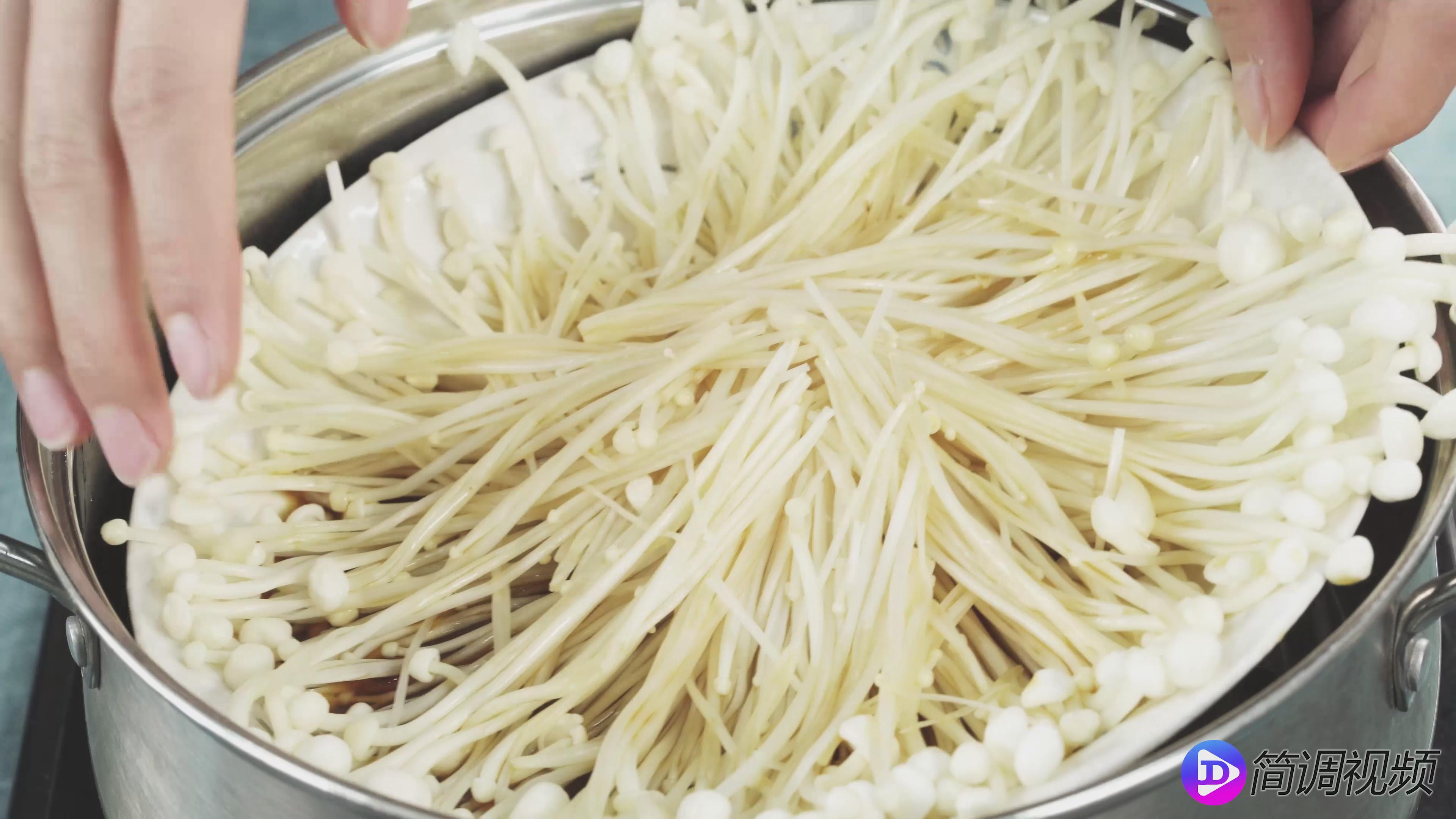 第三步:锅里放热水,放上金针菇的盘子,盖上锅盖,大火蒸10分钟。