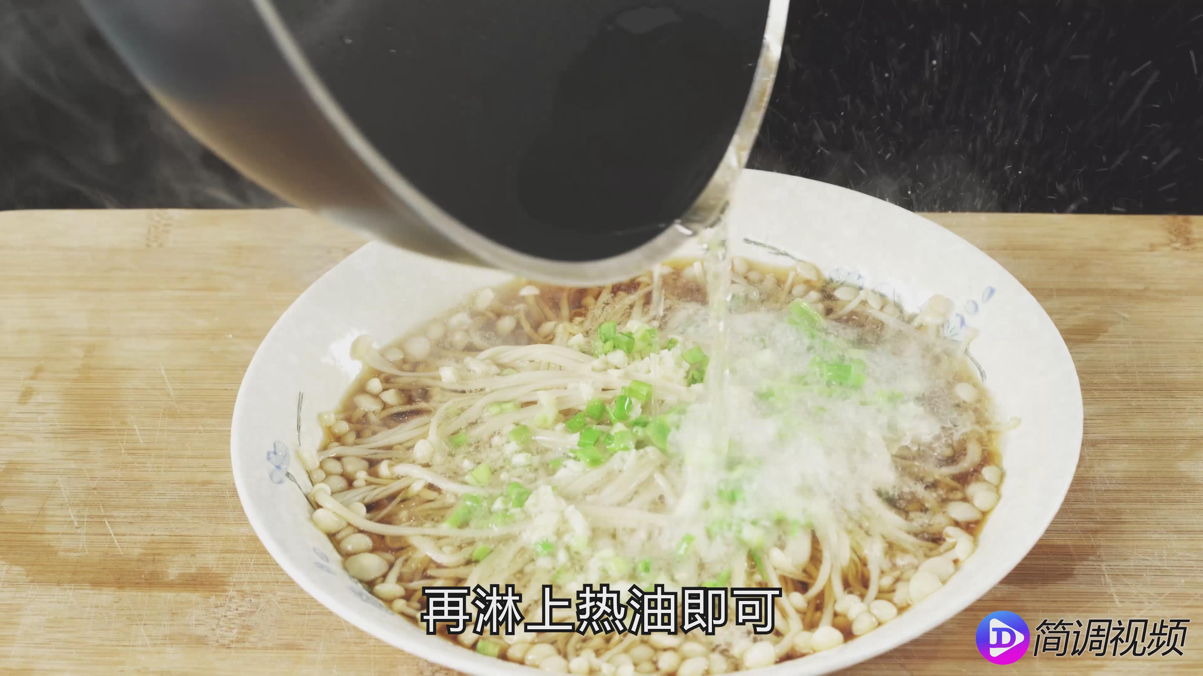 材料:金针菇250克,盐3克,鸡精3克,酱油10克,水15克,葱花5克,蒜5克。