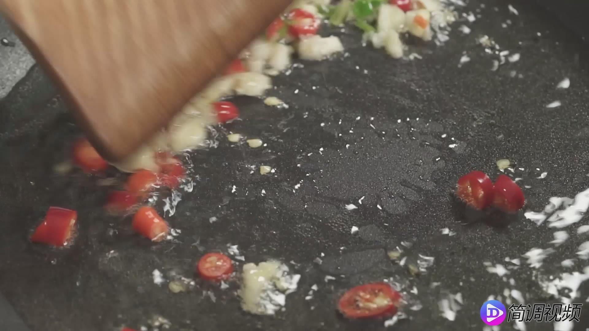 第三步:锅中倒入适量的油,放入大蒜和小米椒使其变香,然后加入酱油、醋和盐调味。