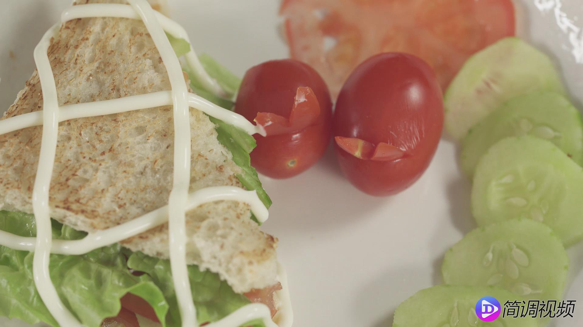第一步:火腿、黄瓜、番茄洗净切片备用。