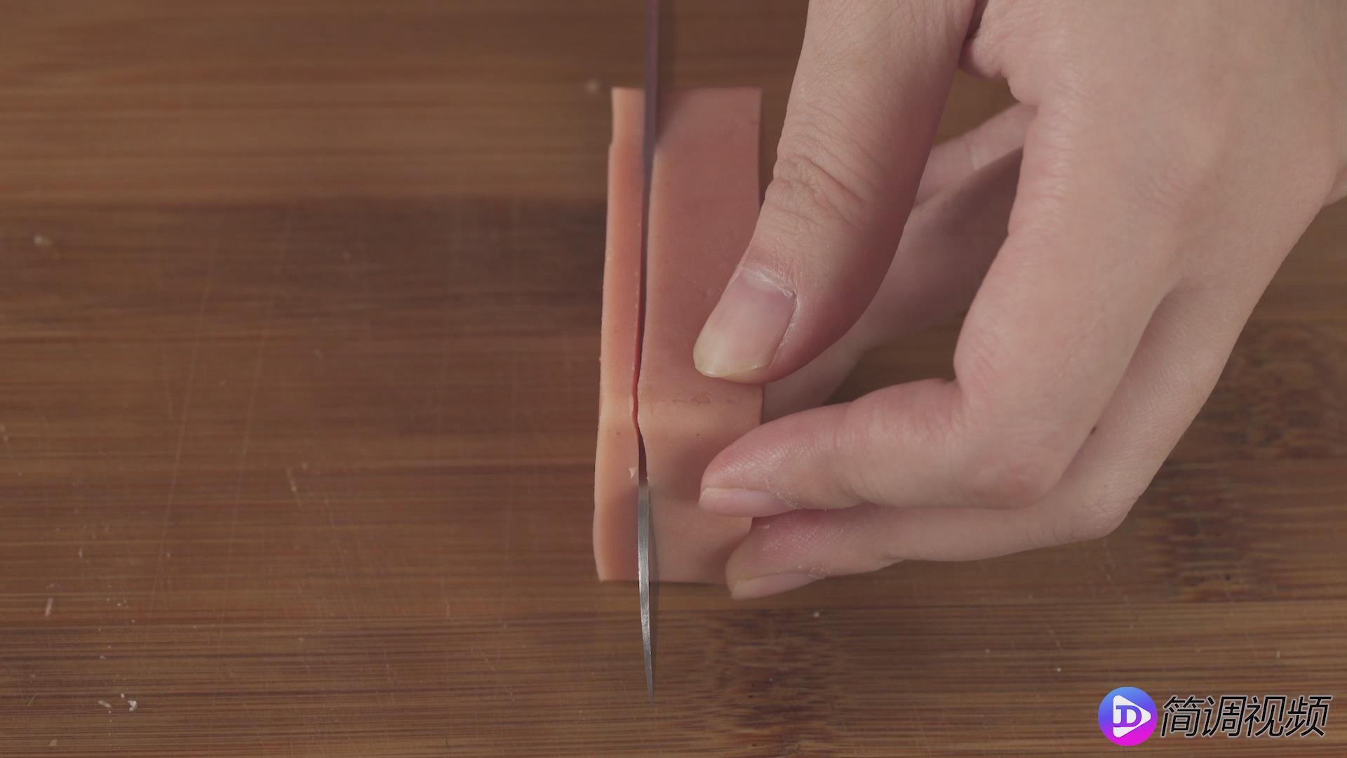 第三步:锅中倒入少许油,放入火腿片炒香,再放入鸡蛋炒成荷包蛋。