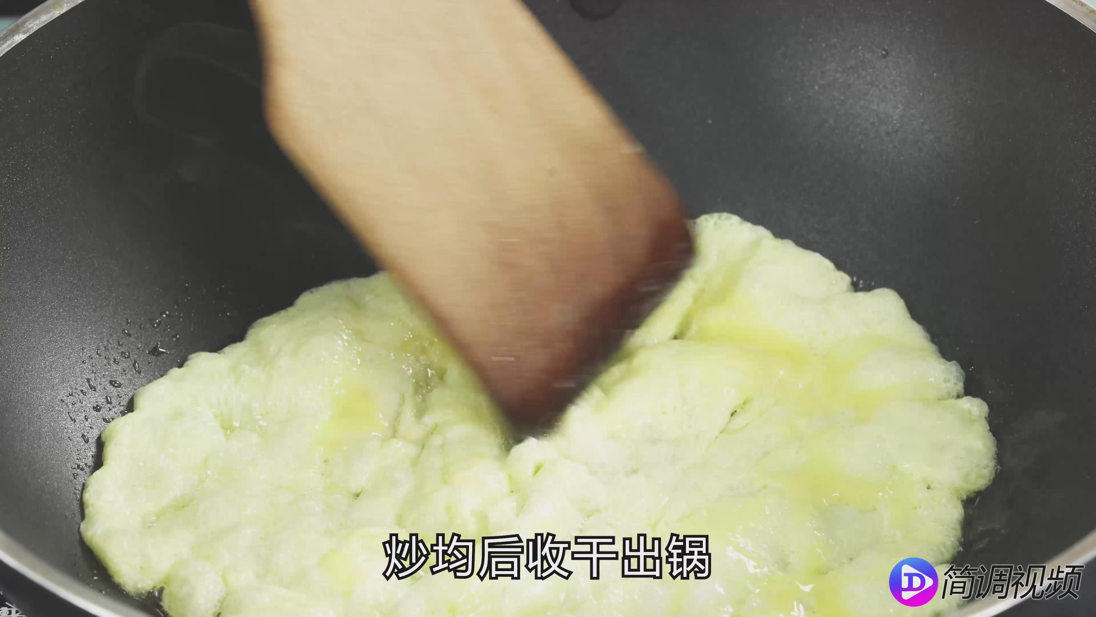 第二步:锅中油加热,将蛋液倒入锅中,快速翻炒,翻炒均匀,出锅。