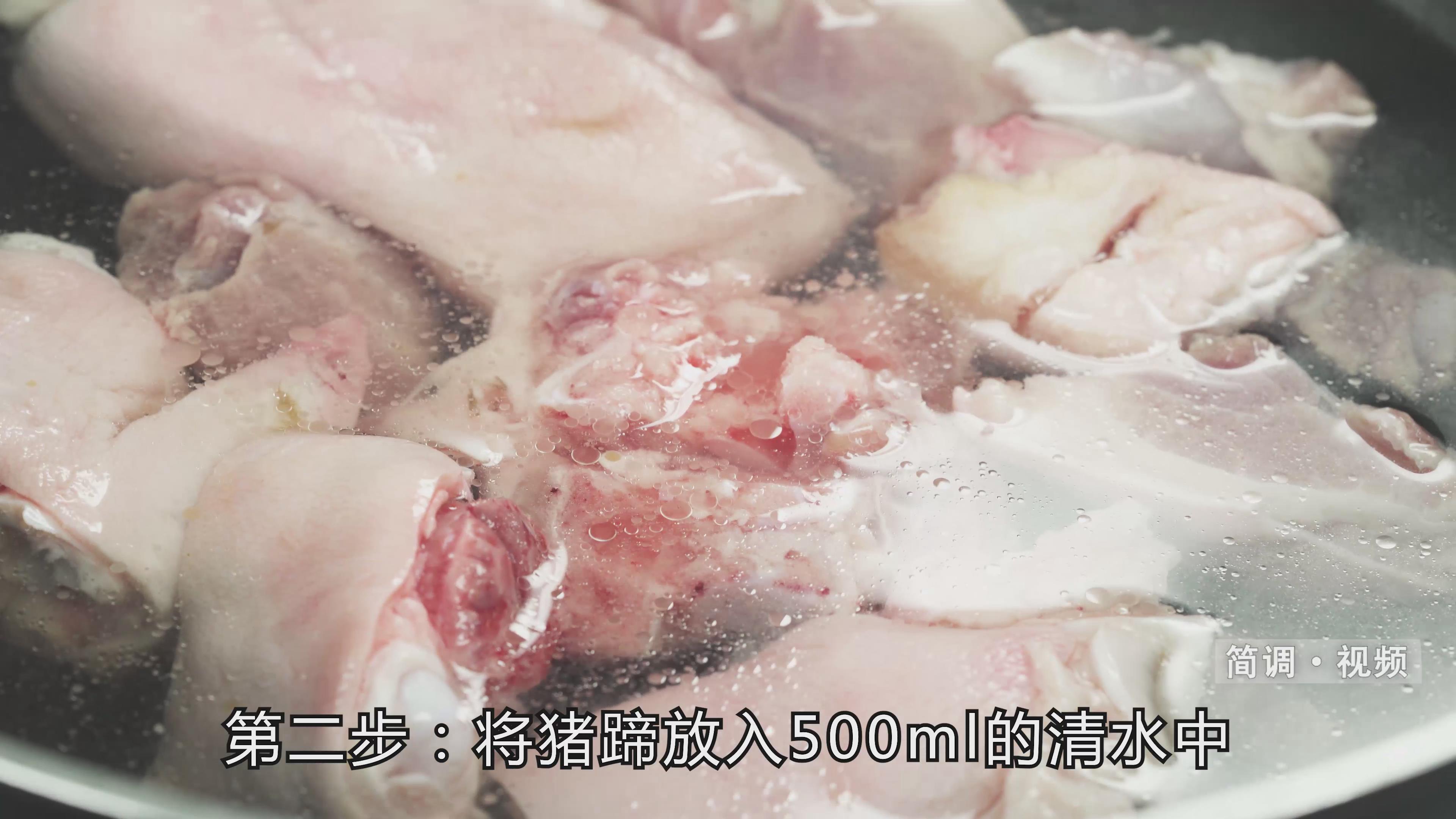 第二步:将猪蹄放入500ml清水中,煮沸,捞出沥干。
