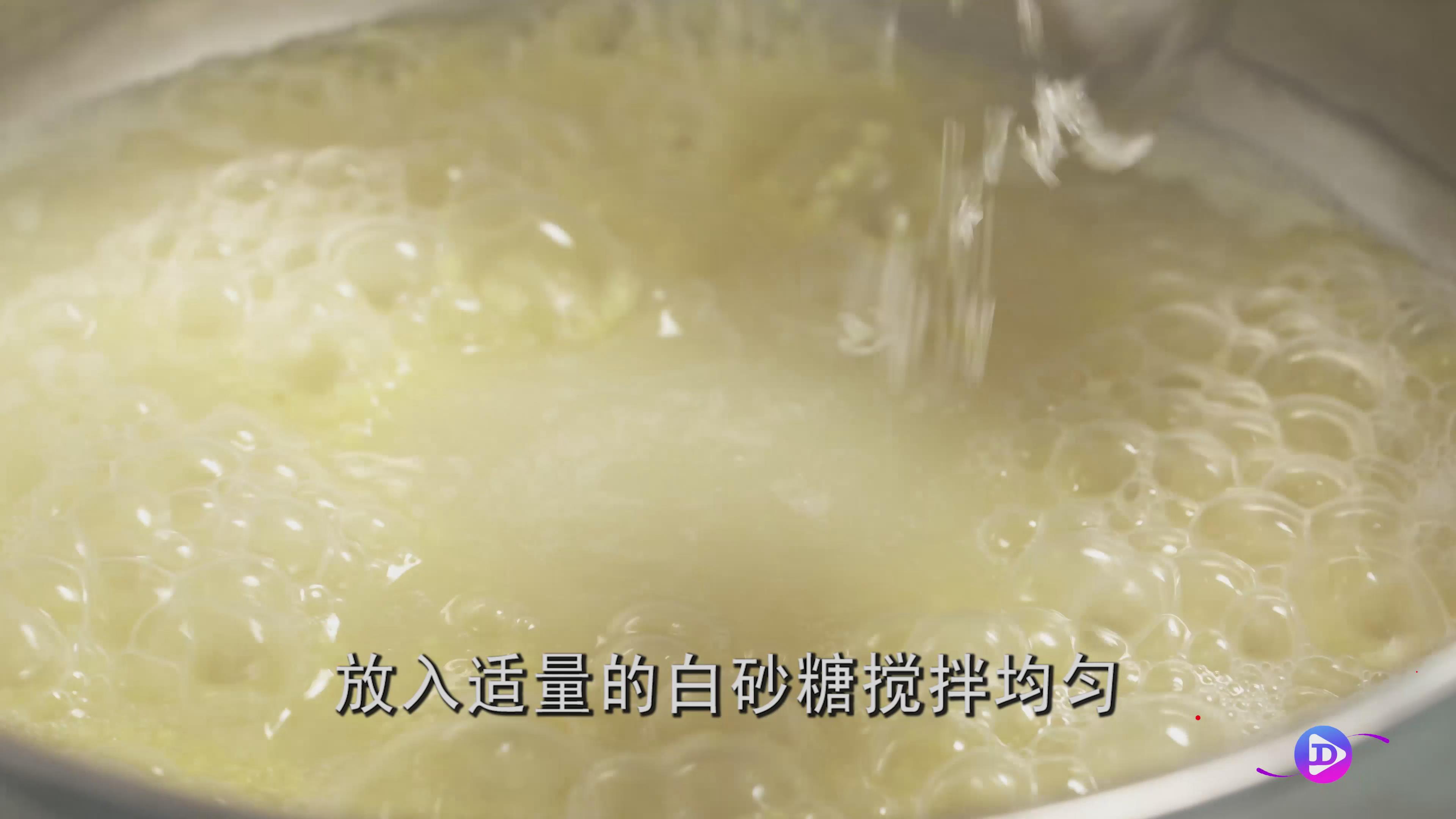 第五步:小米烧开后,加入适量白砂糖,搅拌均匀。