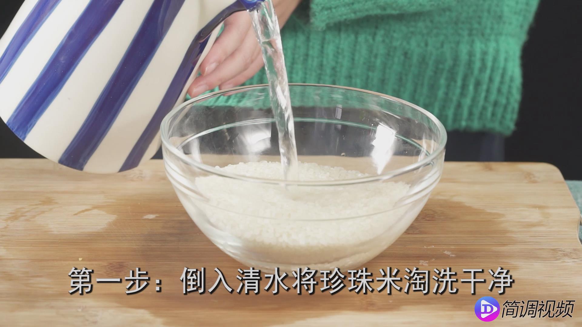 第一步:倒入清水洗净珍珠米,去除污垢。