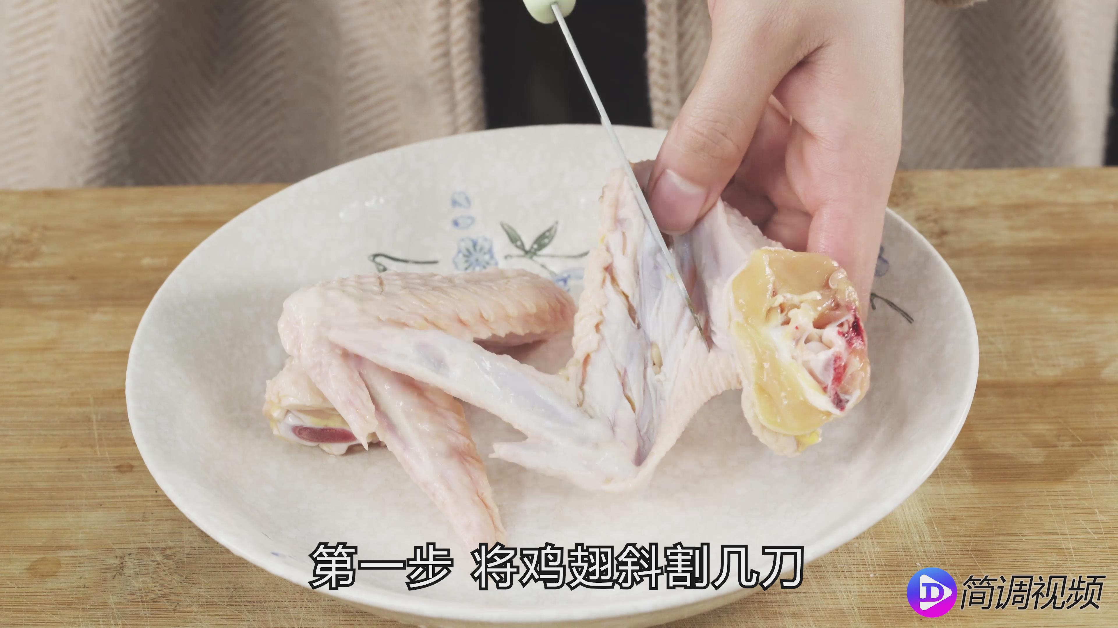第一步:把鸡翅斜着切几下,用牙签扎几下后背,提前做的更入味。