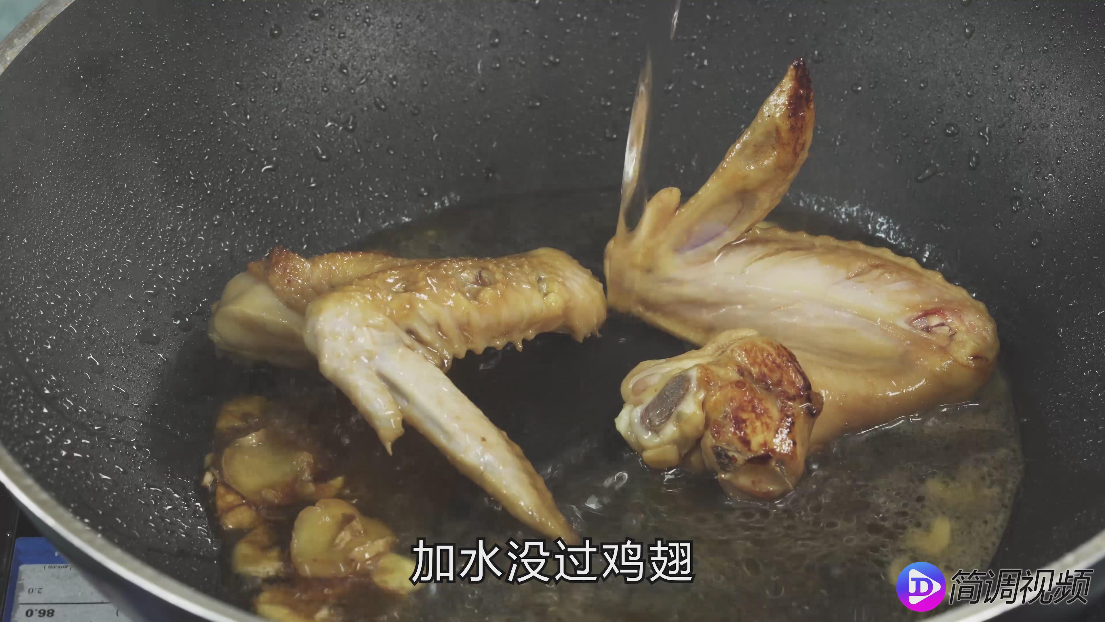 第四步:倒入腌制好的食材,鸡翅加水,中火煮15分钟,然后加入蜂蜜,大火将汤汁烤干。
