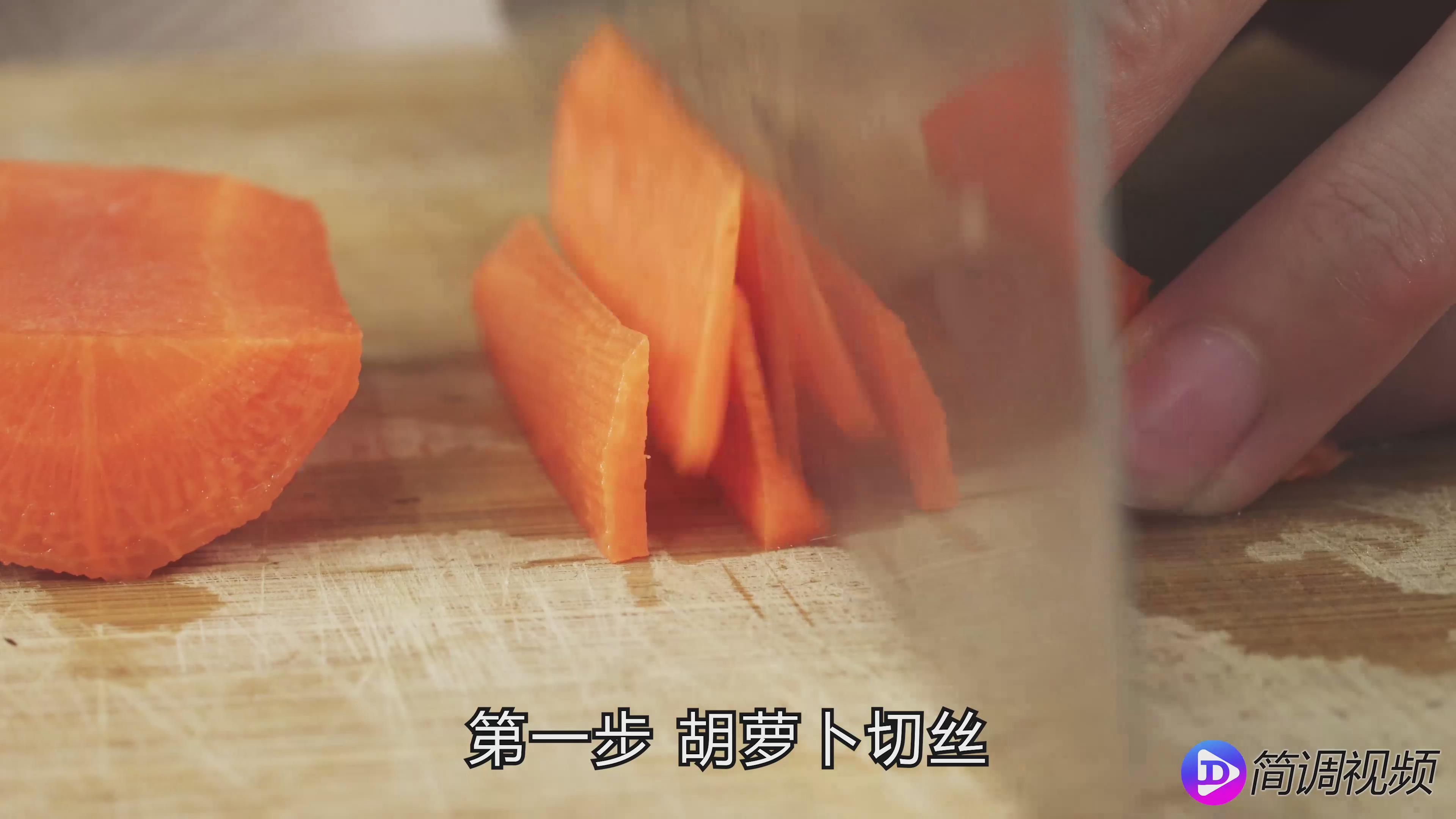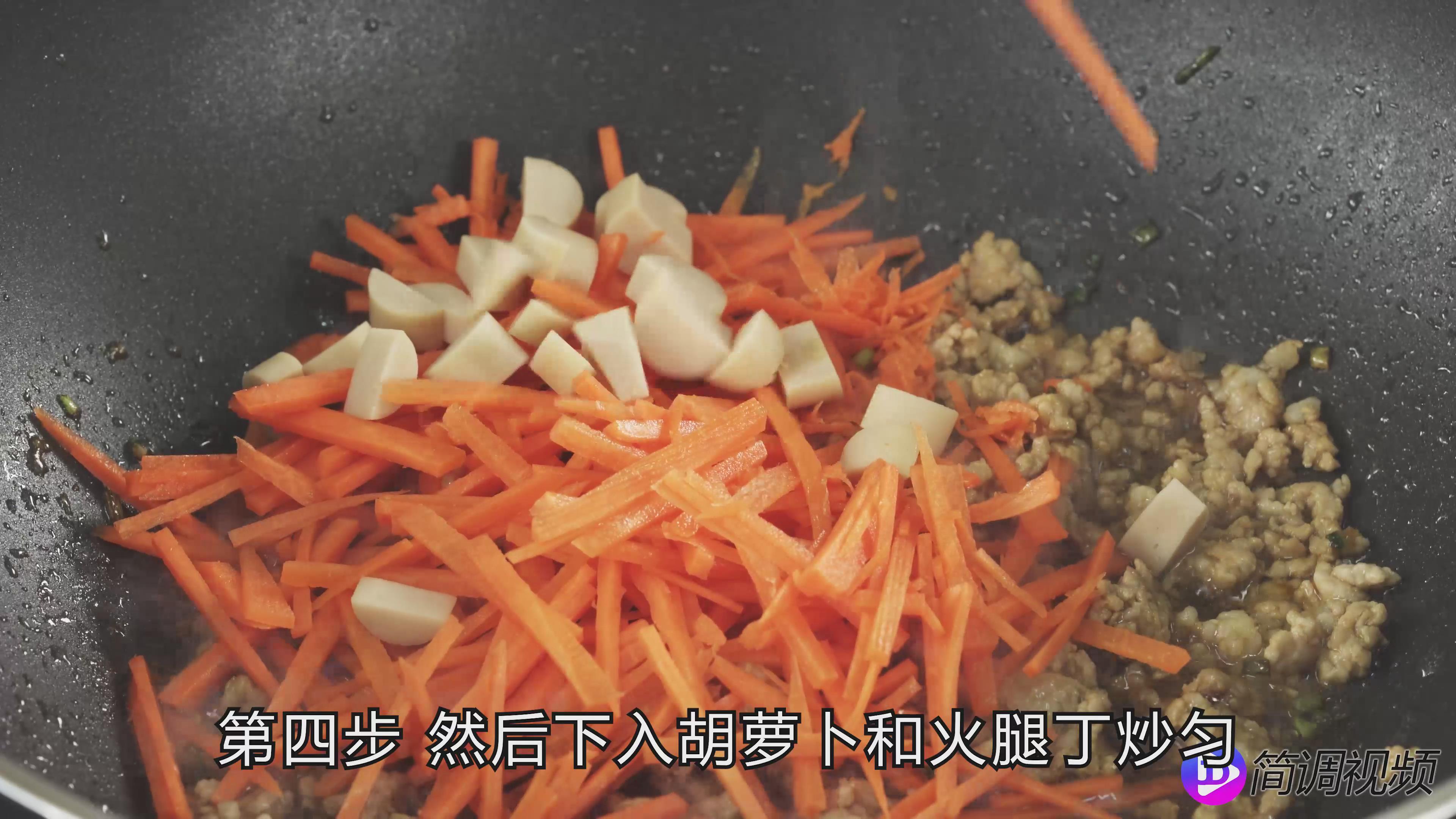 第一步:胡萝卜切丝,洋葱切末,火腿切丁。