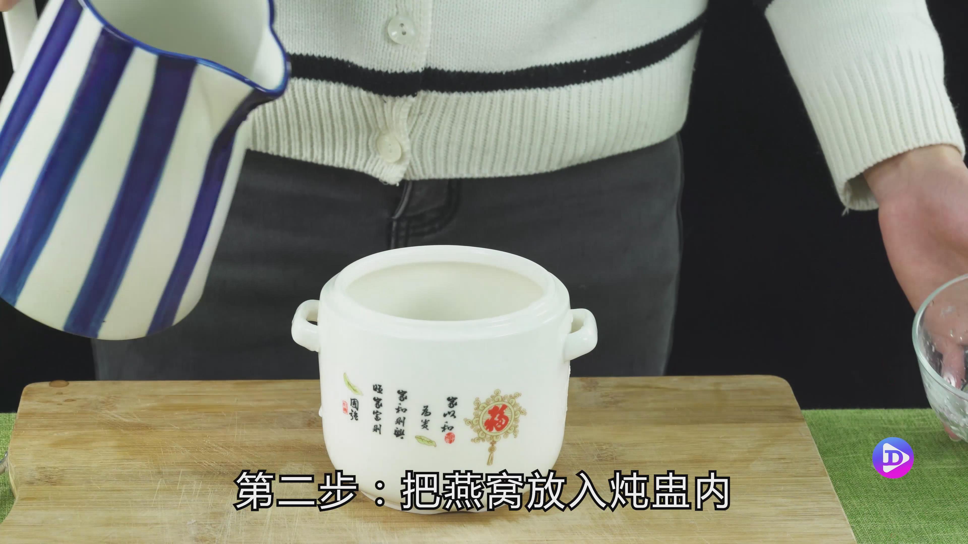 第二步:将燕窝放入锅中,加入清水至燕窝达到3cm,然后将锅放入锅中炖20分钟。