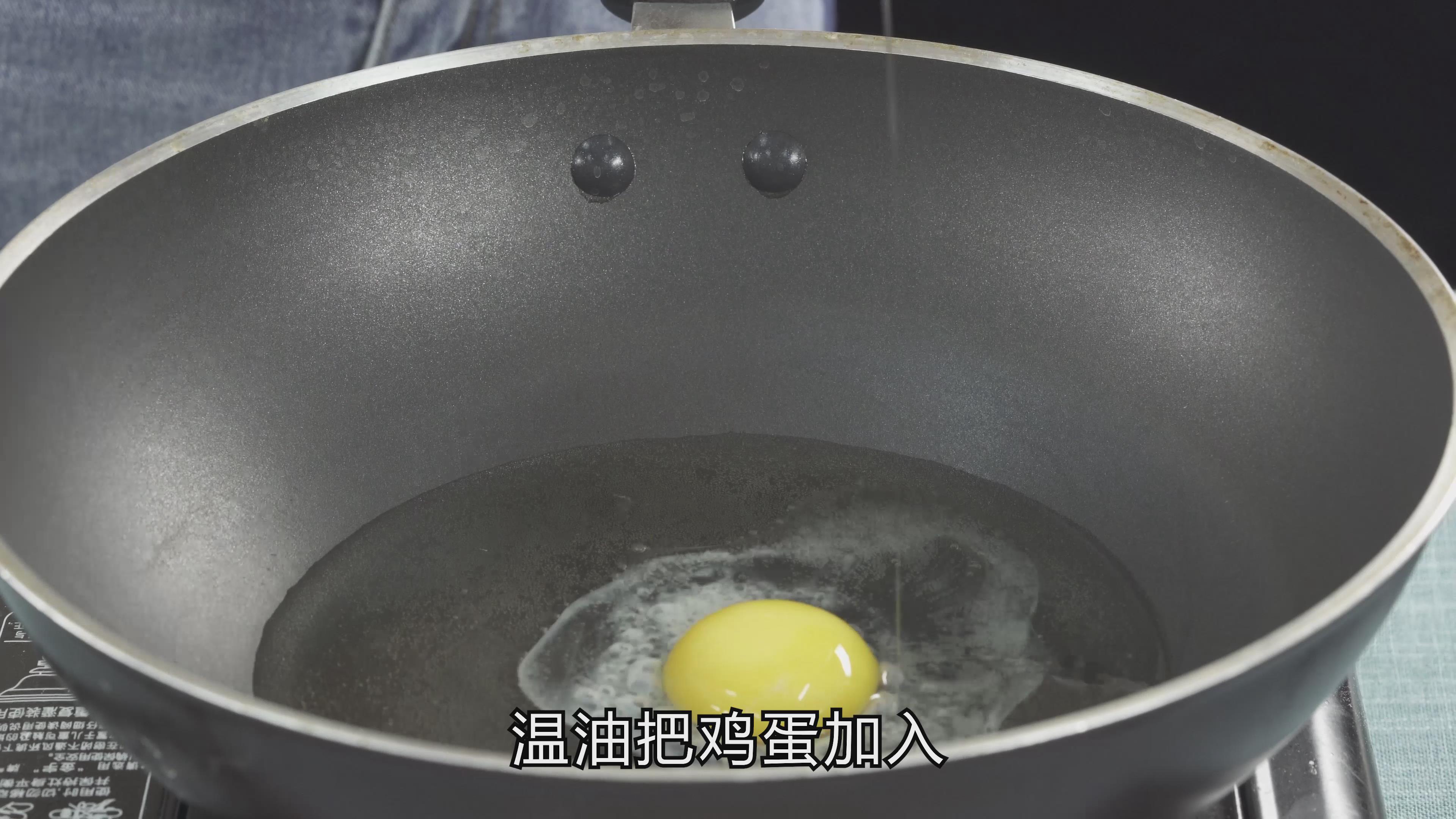 第二步:将鸡蛋用小火煎至表面生,然后关火,出锅装盘。