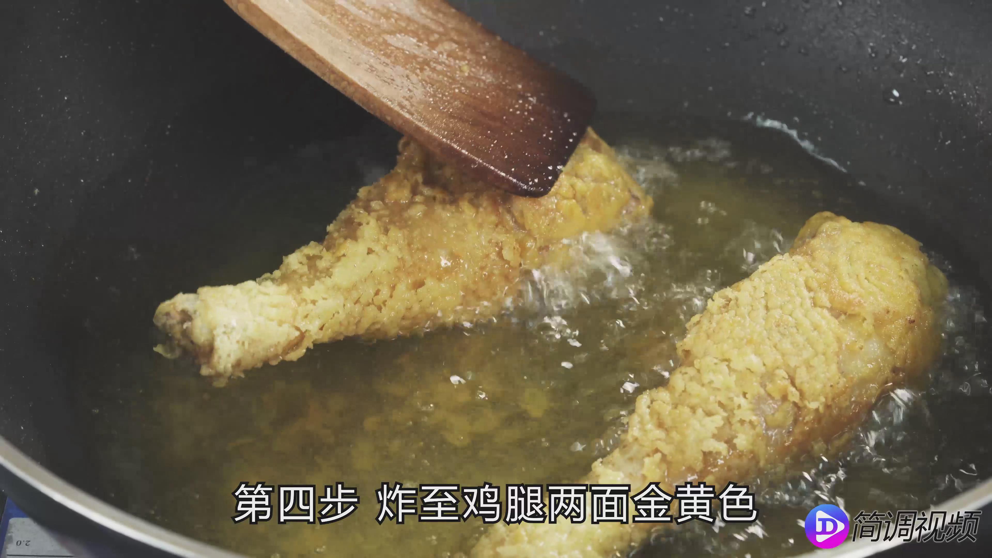 第四步:将鸡腿炸至两面变成金黄色,即可出锅。
