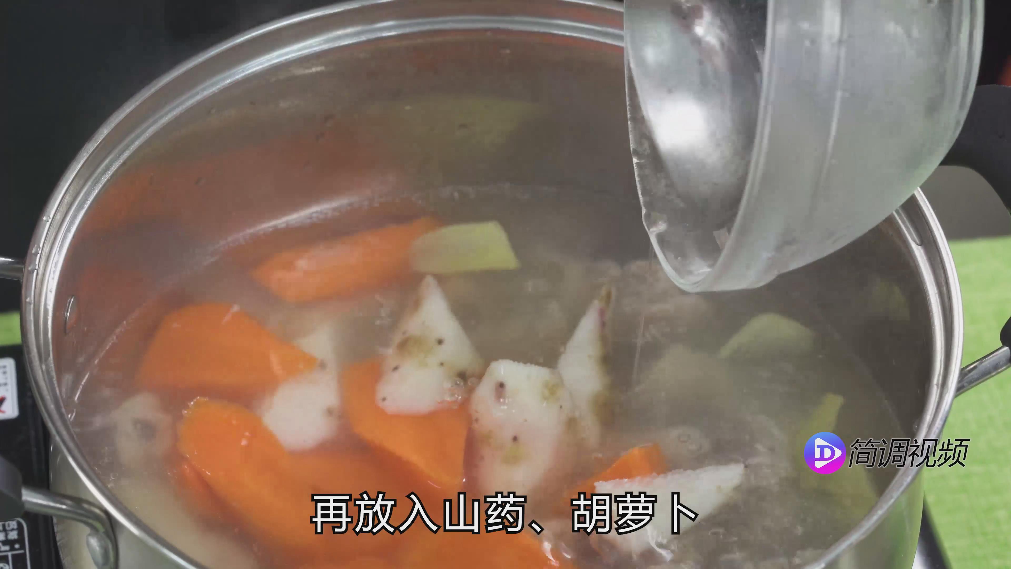 第五步:小火煮一个小时,然后放入山药和胡萝卜,再小火煮一个小时,用枸杞和盐调味。
