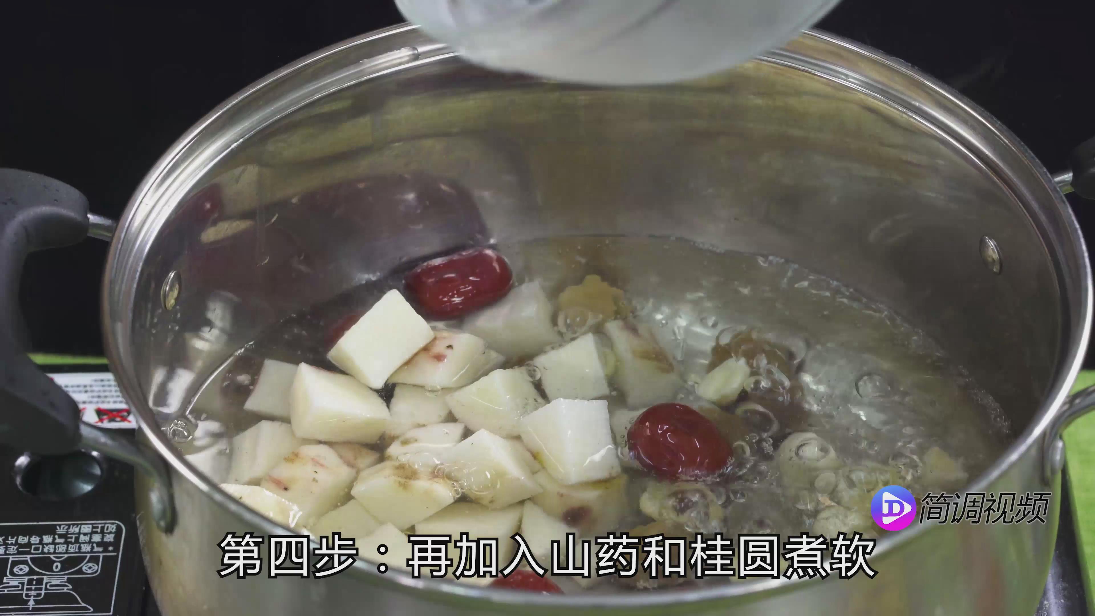 第四步:加入山药和桂圆,煮至软身,煮15分钟左右。