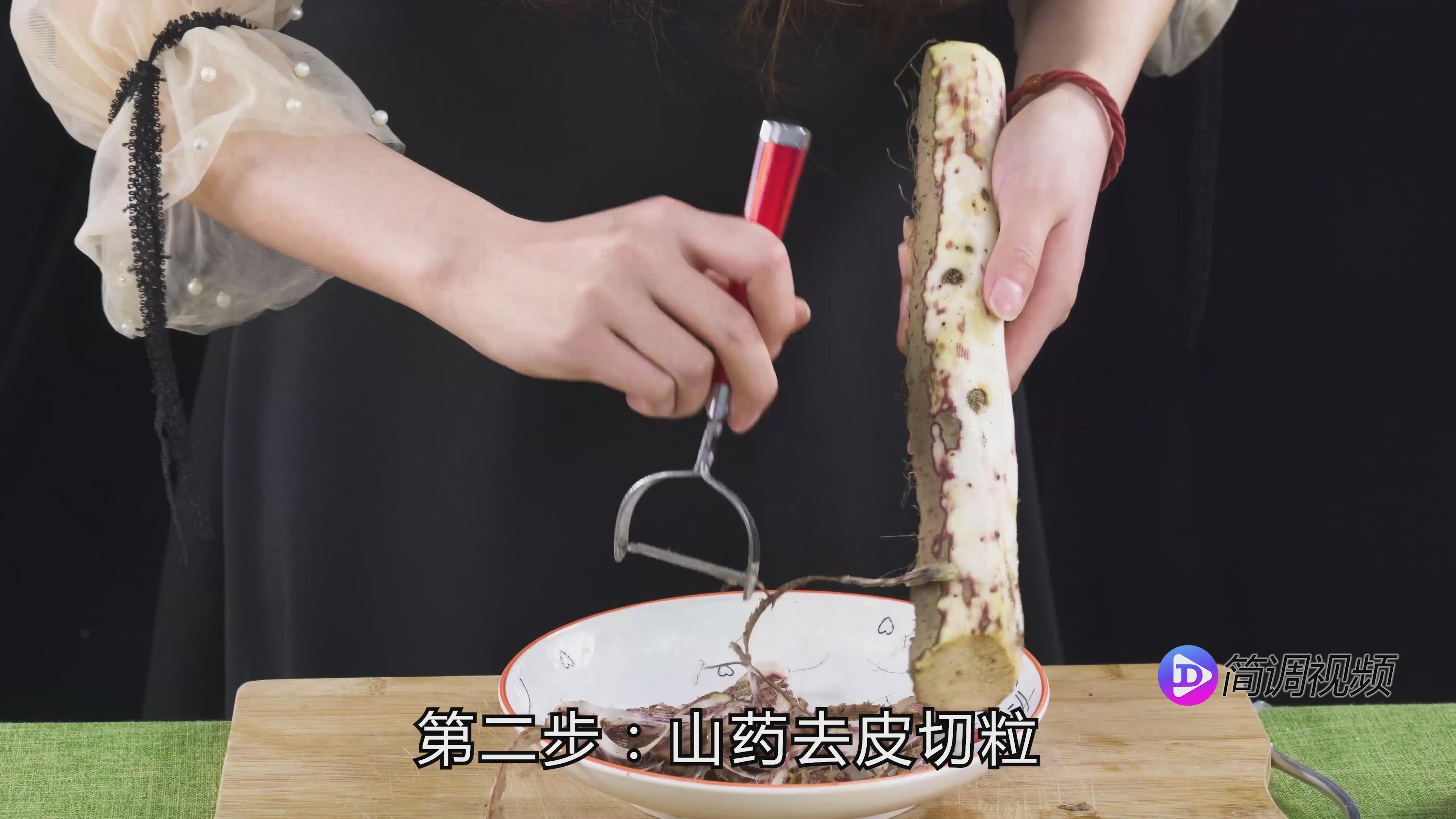 第二步:山药去皮切块,泡水。