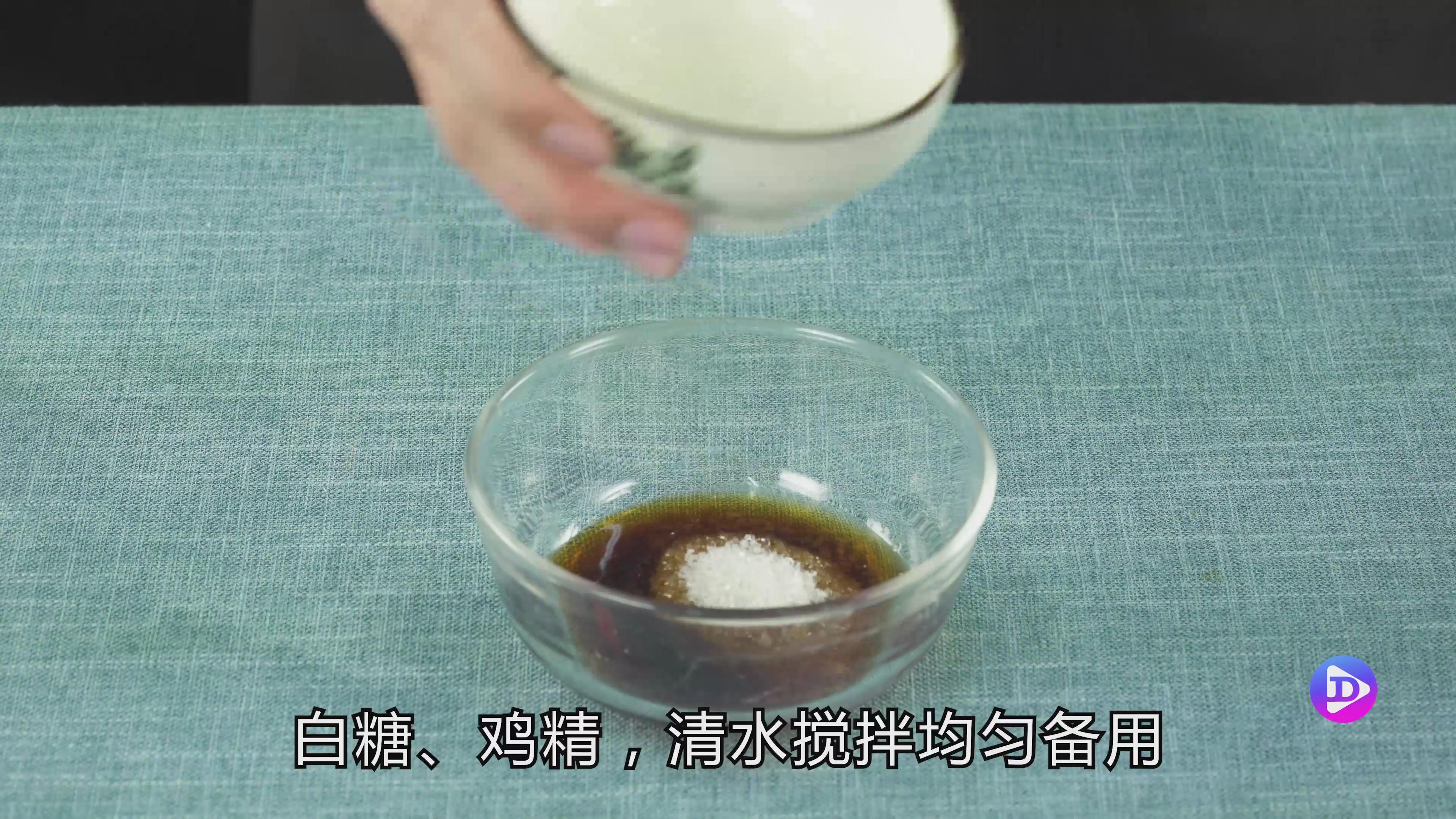 第二步:取一小碗加入酱油、醋、糖、鸡精,用清水拌匀备用。