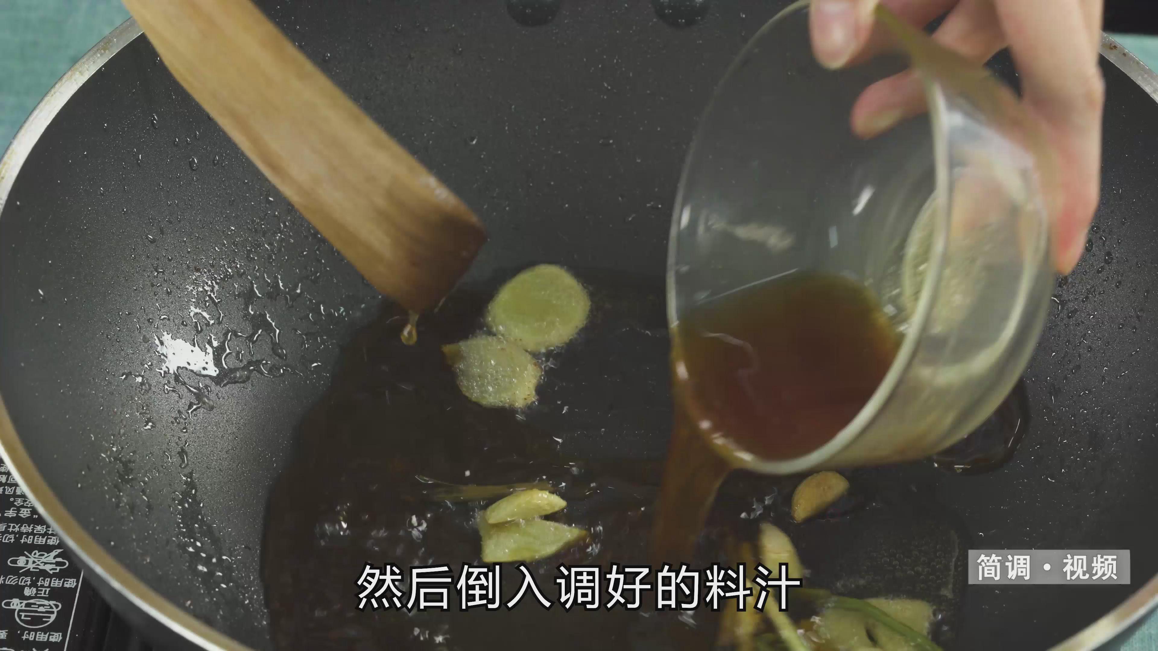 第五步:在炒锅里用少许油炒香葱、姜、蒜。然后倒入调好的果汁。炒香后倒入水淀粉,用稀酱勾芡。