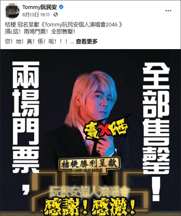 演唱会于8月13日开售后,阮民安当晚还激动宣布,两场演出的门票均售罄。