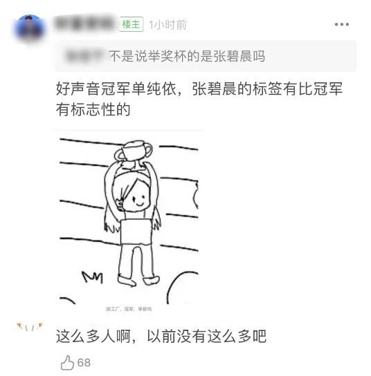 后面,有人纠正了第一张图举着奖杯的那个女孩,不是张碧晨,而是好声音冠军单依纯。