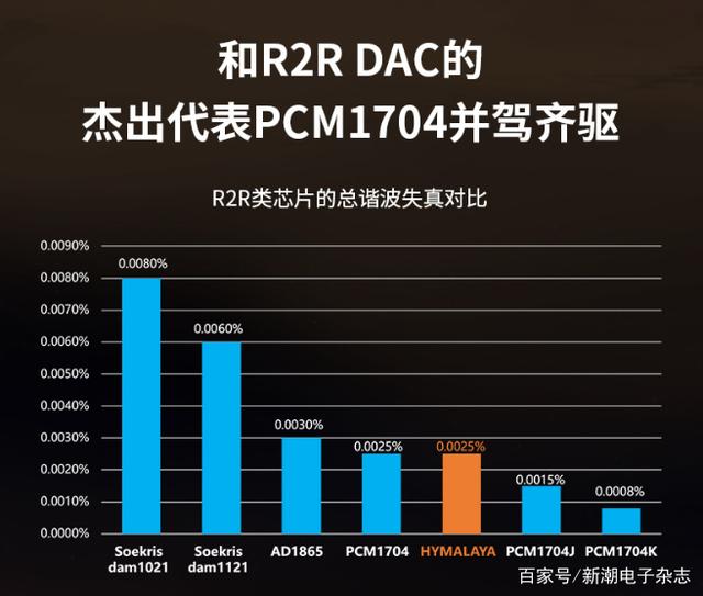 有意思的是,上述这些厂商的DAC方案,几乎都是基于Delta-Sigma架构。这种架构的DAC分辨率高、噪声很低(把大量噪声推到了人耳听不到的域外)。可以说,好的Delta-Sigma架构的芯片在失真指标上表现非常出色。那么为什么HYMALAYA DAC要采用R2R构架呢?