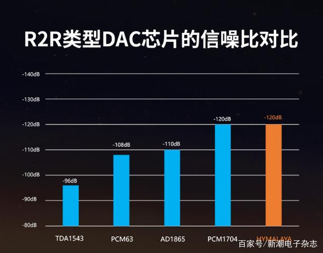 按照HIFIMAN官方的数据,在同类R2R芯片的总谐波失真对比中,HYMALAYA DAC做到了和R2R DAC的王者PCM1704并驾齐驱的水准(均为0.0025%)——对,就是前不久火爆异常的“太上皇”HM1000上所搭载的“绝版梦幻芯片”。同时,在DAC关键性指标信噪比参数表现上,两者均为-120db。