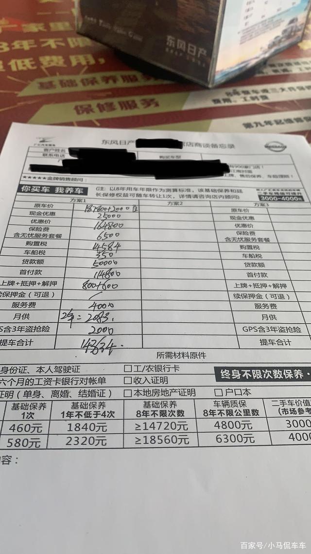 下面简单跟大家分享一下提车价格,最近打算买天籁的朋友可以参考一下。我选择的是天籁2.0升舒适型,这也是最热销的一个版本,指导价18.78万,选白色需要加价2000元。我记得天籁曾经优惠达到过3万,不过现在只有2.5万,大环境所致,没办法。具体费用如图所示,最终4000块钱的服务费给去掉了3000元,这就是真实成交价了。总首付约14万,贷款两年月供2083元,还完贷款后,总落地价19万。送了底盘装甲、全车贴膜、无线充电、4次保养。