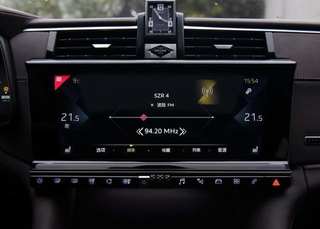 而坐进DS9的车内,你可以很直接的感受到DS对于豪华座舱的见解,并没有很复杂的设计风格,全是靠扎实的用料来凸显其品质感,触手可及的地方都是Nappa真皮和光滑皮革,中控台,门板扶手箱车棚等都是,在顶配34万的车型上表现得更为夸张,丝毫不逊色于60万顶配E级,另外豪车标志之一的石英表也没有缺席。至于科技感,12.3英寸全液晶仪表盘与带有DS CONNECT智能互联系统的12.3英寸的中控多媒体屏幕是凸显科技感之处,界面很清晰内置的功能和高配雪铁龙是相差不大的。而至于无线充电这种配置就并不值得一说了。