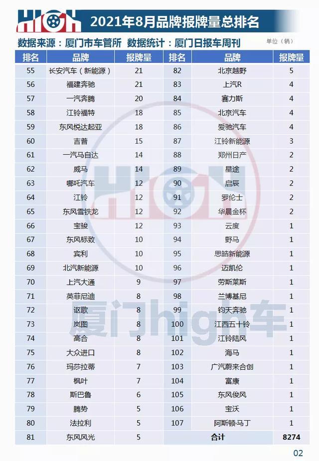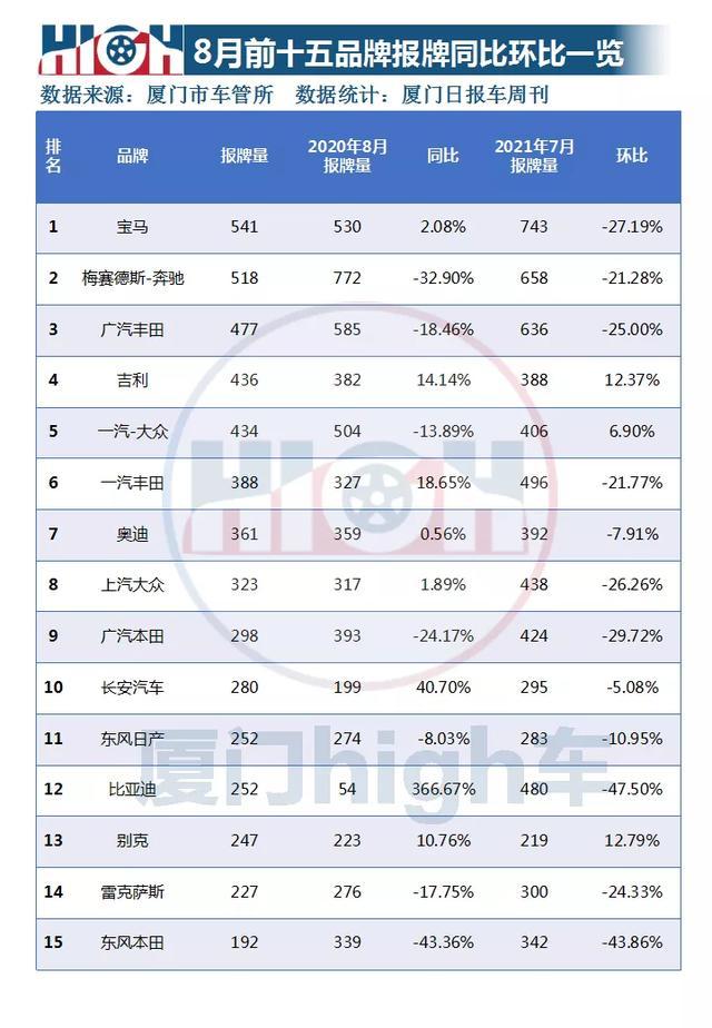 2.《2021年8月厦门车市销量报告|宝马领跑,长安进前十》仅供读者参考,本网站未对该内容进行证实,对其原创性、真实性、完整性、及时性不作任何保证。