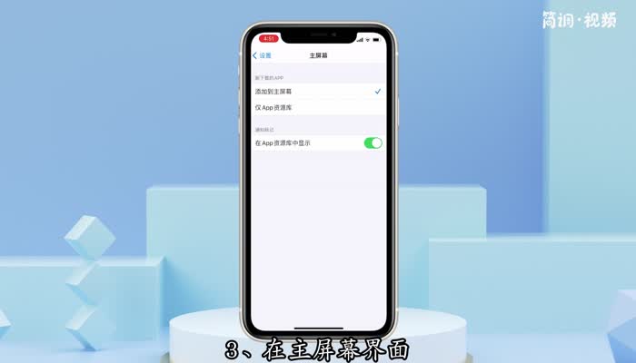 3.在主屏幕界面,找到通知标记栏下的“在App资源库中显示”,点击关闭后面的按钮。关闭后,通知标记不会出现在App资源库页面。