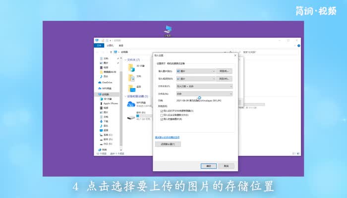4.点击选择要上传图片的存储位置,然后点击确定,最后点击“导入”,等待手机完成上传。