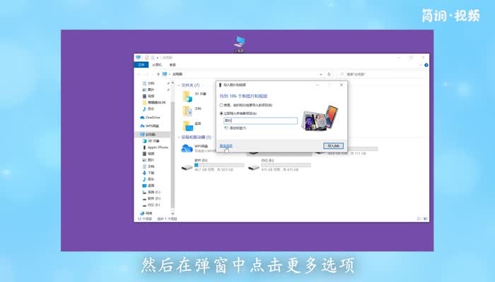 3.点击下拉菜单栏中的“导入图片和视频”选项,然后点击弹出窗口中的“更多”选项;