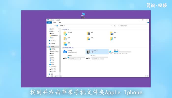 2.找到并右击苹果Iphone ";我的电脑中的文件夹;