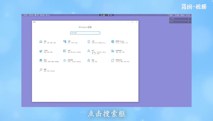 2.在设置界面,点击搜索框,进入“控制面板”,点击搜索;