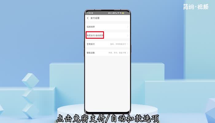4.进入支付设置页面后,点击免密支付/自动扣款选项;