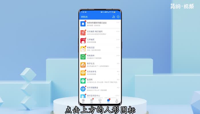 1.打开手机桌面的支付宝。打开支付宝后,点击下方的“消息”选项,进入支付宝消息列表;