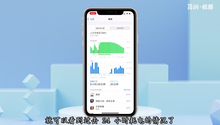 3.进入电池页面后,可以看到过去24小时的电量消耗;
