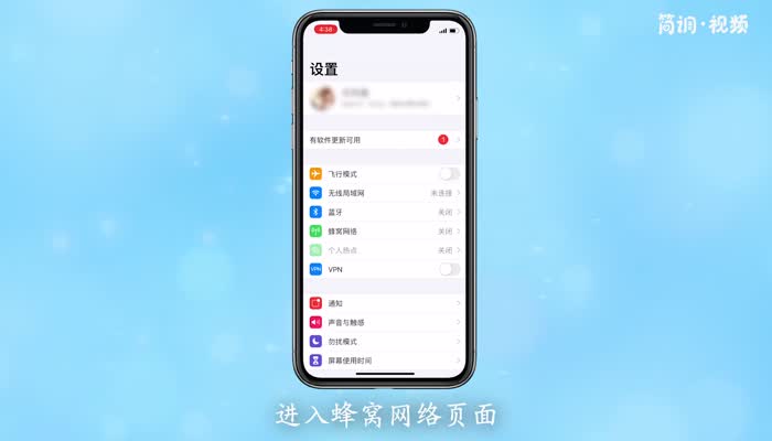 温馨提示:要打开蜂窝网络,也可以下拉右上角的屏幕,打开控制中心,点击蜂窝网络图标,打开蜂窝数据。