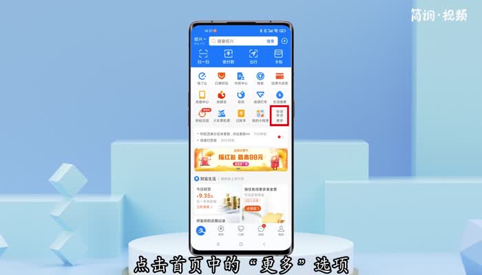 1.打开支付宝,点击首页“更多”选项,进入申请中心界面;