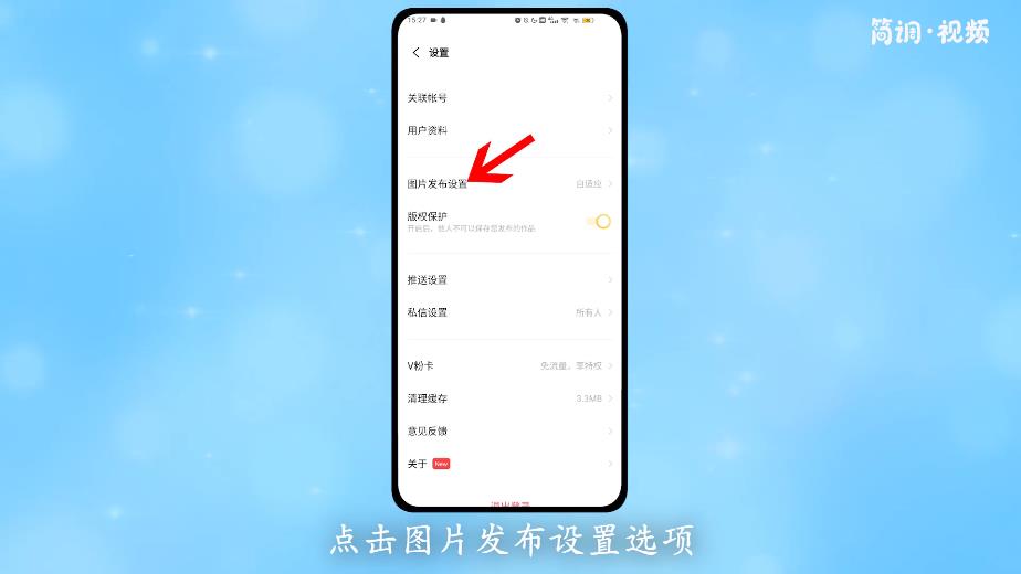 4.进入设置页面后,点击“图片发布设置”选项,进入图片发布设置页面;