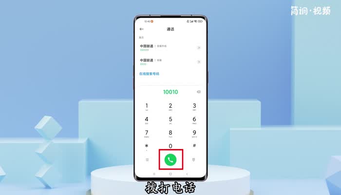 1.输入“10010”号码后,拨打电话,等待接通;