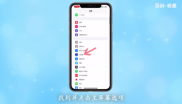 2.进入页面后,滑动手机屏幕,找到并点击“主屏幕”选项,进入主屏幕设置页面;