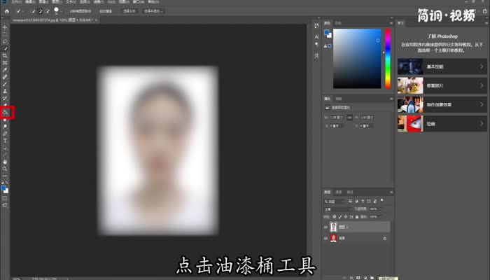 4.单击新建图层图标创建新图层,单击油漆桶工具,选择要更改的颜色。