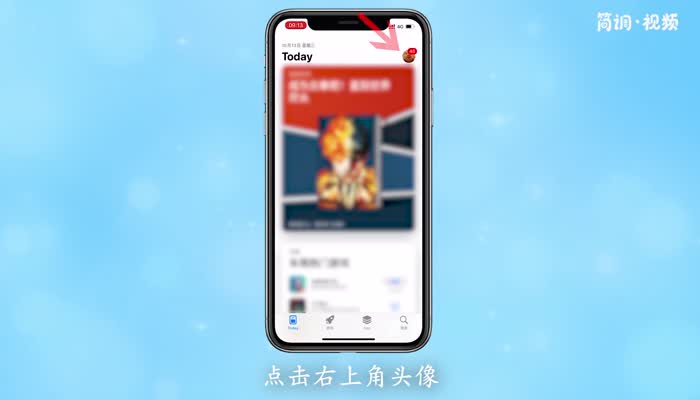 1.打开手机上的App Store。进入页面后,点击右上角的头像;