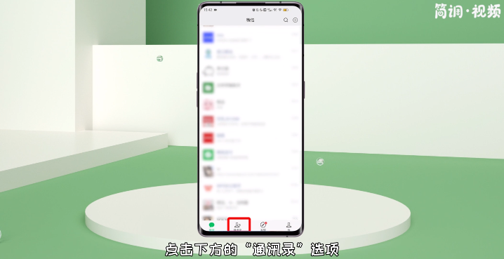 2.进入微信消息页面后,点击下方的“通讯录”选项,进入通讯录页面;